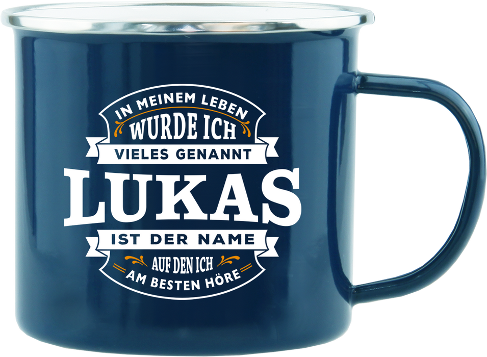 Emaille Becher / Tasse Lukas ist der Name auf den ich am besten höre
