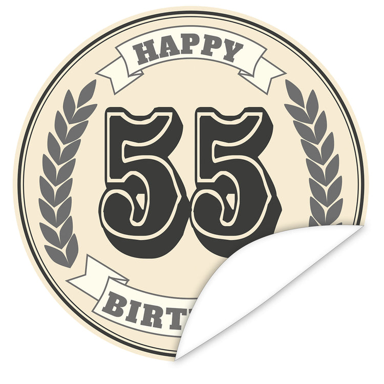 55 Zahl-Klebedekor Klassik - rund ⌀ 7 cm I Klassisch gestalteter Zahlen-Sticker zum Geburtstag oder Jubiläum