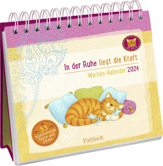 Die Om-Katze hat in dem Wochenkalender zum Aufstellen für das Jahr 2024 viele hilfreiche Tipps parat, wie du Stress und Hektik mit mehr Gelassenheit begegnen kannst: Auf den Rückseiten der Kalenderblätter findest du kurze Texte mit Anregungen und Detox-Rezepte, um Momente der Achtsamkeit und Entspannung in deinen Alltag einzubauen. Inspirierende Zitate und die lustigen Illustrationen von Lisa Manneh machen den Tischkalender zu einem fröhlichen Anti-Stress-Begleiter für 2024.