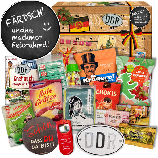 Ostprodukte Adventskalender 2025 im Ossiladen kaufen. Die besten Ideen mit Ostprodukten in einem Kalender .... spannende & leckere Erinnerungen.