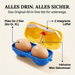 Unser praktischer Eierträger 2-fach mit integriertem Salzstreuer und zwei Löffeln ist die ideale Lösung für unterwegs – sei es beim Picknick, beim Camping oder einfach für den sicheren Transport von gekochten Eiern. Mit seinem cleveren Design in gelb und blau (eine Seite gelb, die andere blau) vereint er Funktionalität mit einem Hauch Nostalgie.
