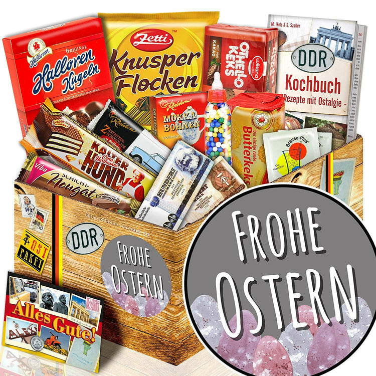Eine Möglichkeit, "Frohe Ostern" mit Süßigkeiten aus der DDR zu wünschen, könnte sein, eine Geschenkbox oder eine Tüte mit einer Auswahl an Ostern-Süßigkeiten aus der DDR zusammenzustellen und sie als Geschenk zu überreichen. Einige Beispiele für Ostern-Süßigkeiten aus der DDR sind: