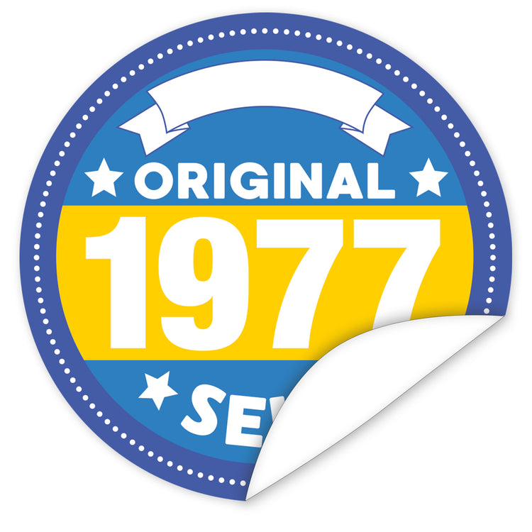 Jahreszahl 1977 als Aufkleber I rund ⌀ 7 cm I Individueller Sticker mit freier Fläche zum Beschriften