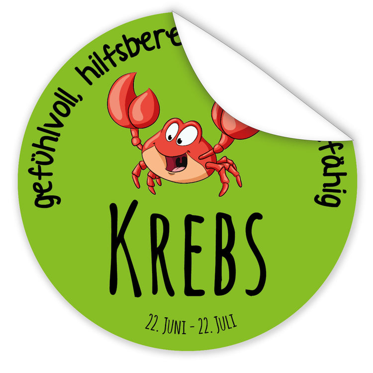 Sternzeichen Comic Krebs - Comic-Sternzeichenfigur - Aufkleberbild I rund ⌀ 7 cm I Hochwertiger Horoskop-Sticker