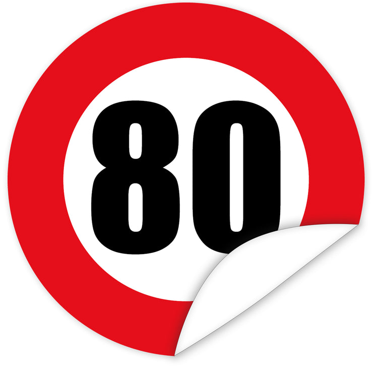 Zahl 80 - Verkehrsschild-Motivsticker I rund ⌀ 7 cm I Zeitloser Geburtstags- oder Jubiläums-Aufkleber