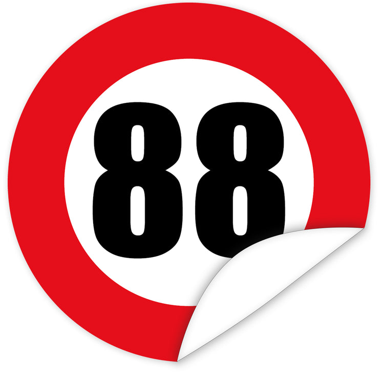 Zahl 88 - Verkehrsschild-Motivsticker I rund ⌀ 7 cm I Zeitloser Geburtstags- oder Jubiläums-Aufkleber