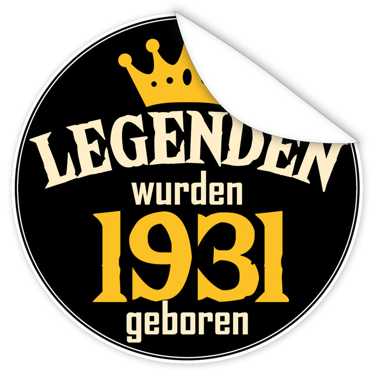 Legenden wurden 1931 geboren - Motivaufkleber I rund ⌀ 7 cm I Schwarzer Sticker