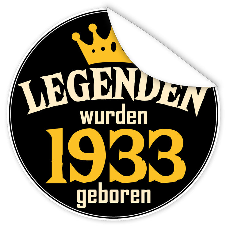 Legenden wurden 1933 geboren - Motivaufkleber I rund ⌀ 7 cm I Schwarzer Sticker
