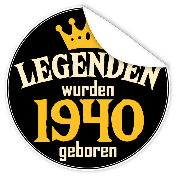 Legenden wurden 1940 geboren - Motivaufkleber I rund ⌀ 7 cm I Schwarzer Sticker