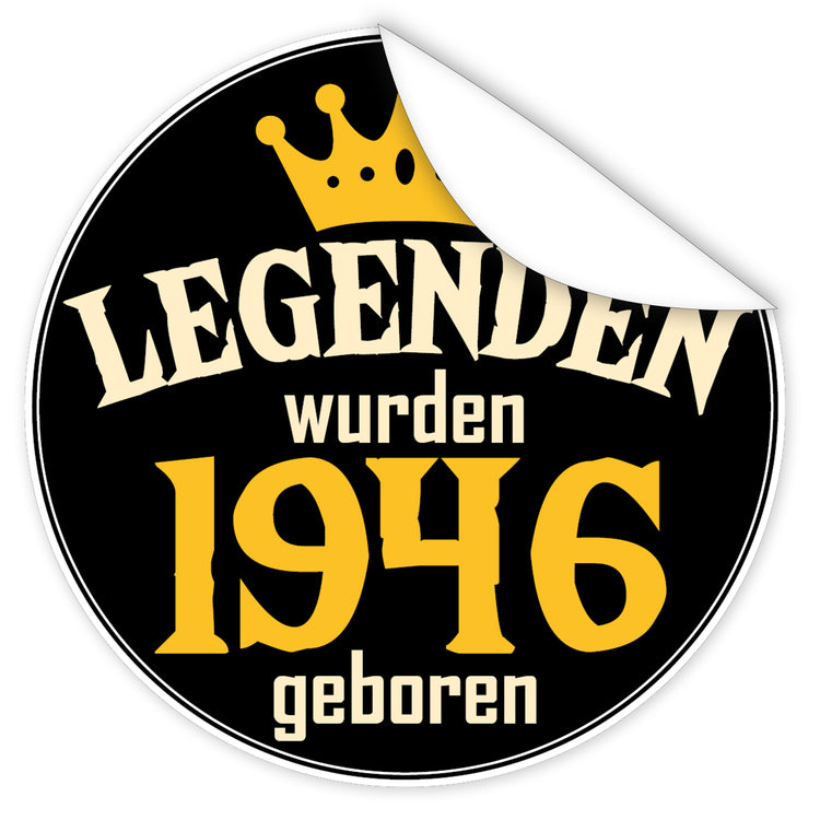 Legenden wurden 1946 geboren - Motivaufkleber I rund ⌀ 7 cm I Schwarzer Sticker