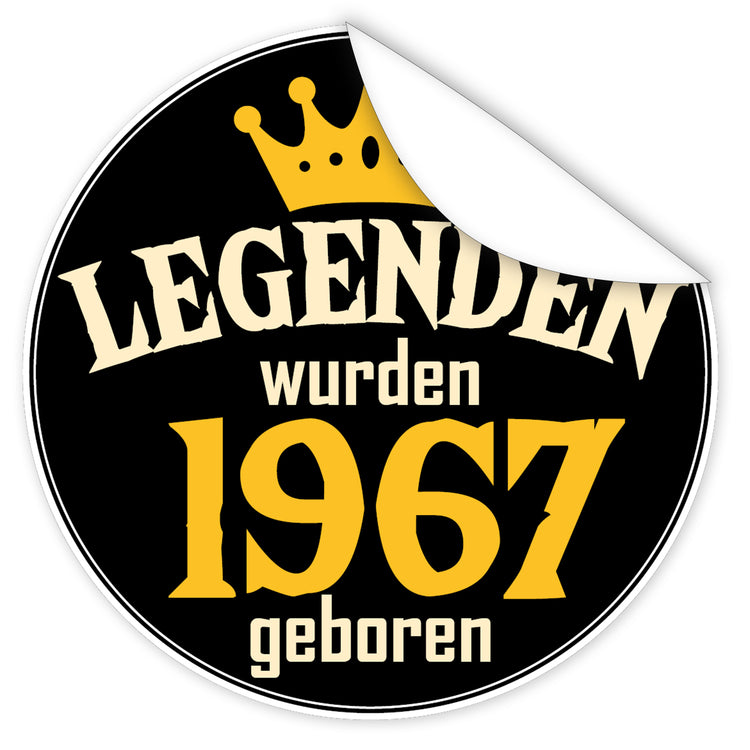Legenden wurden 1967 geboren - Motivaufkleber I rund ⌀ 7 cm I Schwarzer Sticker