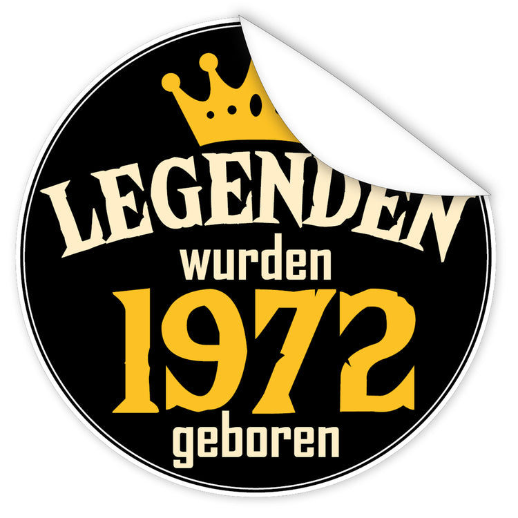 Legenden wurden 1972 geboren - Motivaufkleber I rund ⌀ 7 cm I Schwarzer Sticker