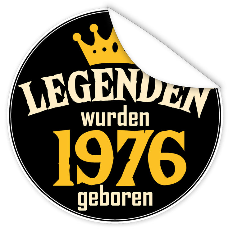 Legenden wurden 1976 geboren - Motivaufkleber I rund ⌀ 7 cm I Schwarzer Sticker