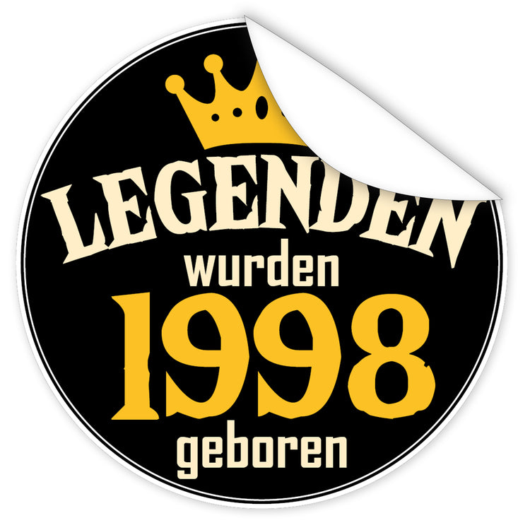 Legenden wurden 1998 geboren - Motivaufkleber I rund ⌀ 7 cm I Schwarzer Sticker