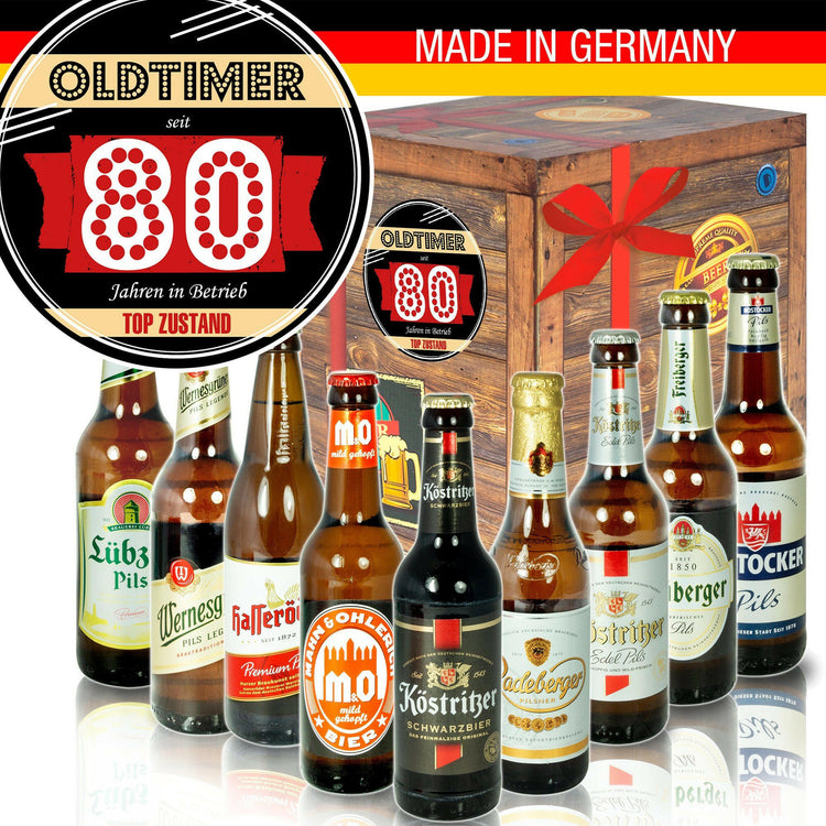 Oldtimer - seit 80 Jahren in Betrieb - Geschenkbox "Ostbiere" 9er Set