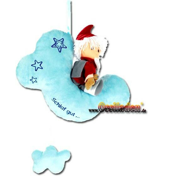 Sandmann mit Musik auf Wolke - großSandmannpuppe, ist auf der Wolke fixiert, in der Wolke befindet sich ein Musikzugwerk.<br>Wenn man an der Schnur zieht ertönt die originale Melodie aus dem Fernsehen " Sandmann, lieber Sandmann"<br><br>Masse der Wolke :