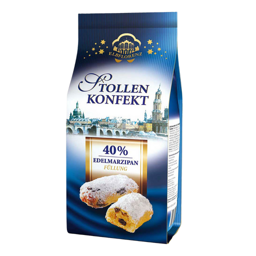 Genießen Sie feinstes Stollenkonfekt von Elbflorenz/ Vadossi – ein klassisches Gebäck mit einer köstlichen Mandel-Marzipanfüllung. Mit 40 % Mandel-...