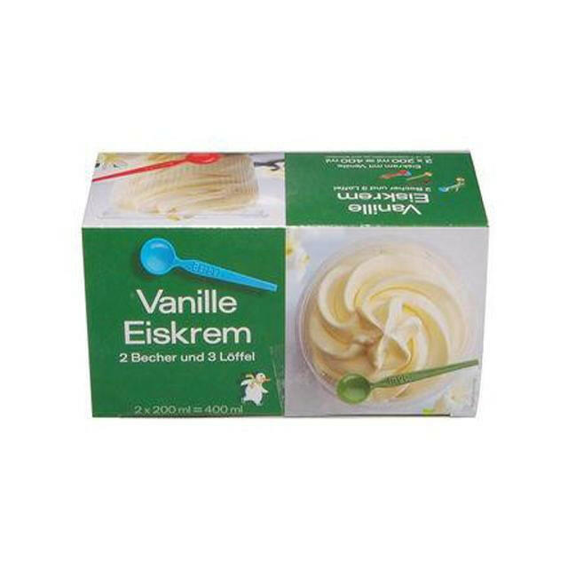 Erhältlich in unserer Geschäftstelle als Vanille, Schoko oder Erdbeere im praktischen Bescher mit Löffel.