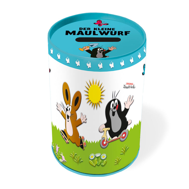 Damit aus einem kleinen Münzschatz mal ein großer wird, der Wünsche erfüllen kann, passt der kleine Maulwurf drauf auf! Dank abnehmbarem Deckel ist die hübsche Spardose aus Metall beliebig oft verwendbar. Ein tolles Geschenk, um Kinder den Wert von Geld selbst erfahren zu lassen – und ein Muss für alle kleinen Maulwurf-Fans!