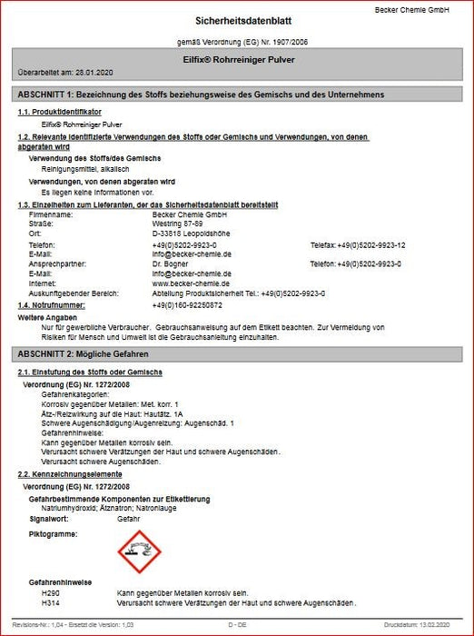Inhaltsstoffe: Enthält Natriumhydroxid