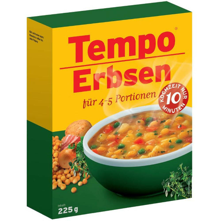 Das Waschen und Einweichen am Vortag entfällt. Aus den Tempo-Erbsen können alle Erbsengerichte zubereiten werden.