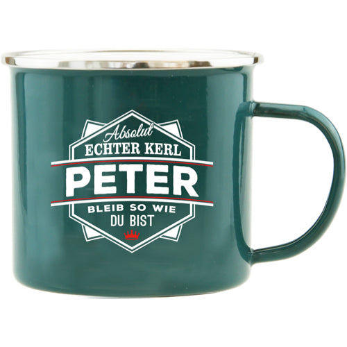 Emaille Becher / Tasse Peter bleib wie du bist