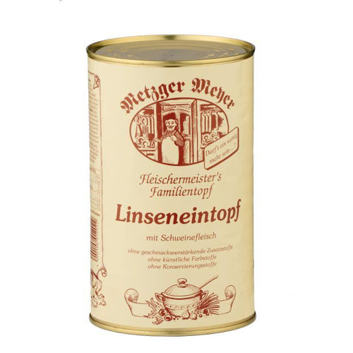 Schmeckt wie hausgemacht, dieser herzhafte Linsentopf mit geräuchertem Fleisch, Kartoffeln und Karotten. Süß-säuerliches Nachwürzen ist je nach Geschmack jederzeit möglich.