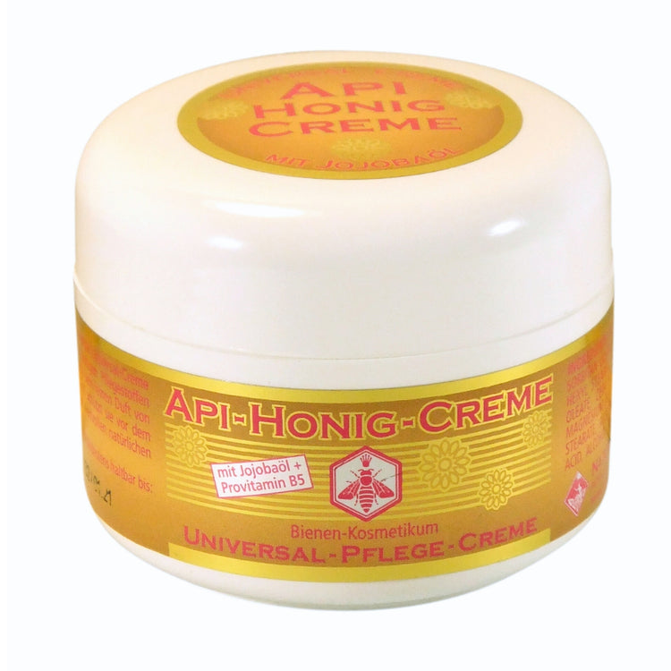 Die API-HONIG-CREME ist eine schnell einziehende Feuchtigkeitscreme, die für Gesicht, Hände und Körper geeignet ist. Dank ihres Wirkstoffkomplexes aus Honig, Provitamin B5, Allantoin und Betain schützt sie die Haut vor Austrocknung und fördert ihre Regeneration. Der atmungsaktive Schutzfilm aus reinem Bienenwachs und die feuchtigkeitsspendende Wirkung von Jojobaöl und Sheabutter verleihen Ihrer Haut spürbare Geschmeidigkeit. Gönnen Sie sich das angenehme Pflegeerlebnis mit den wertvollen natürlichen Inhaltsstoffen aus dem Bienenstock.