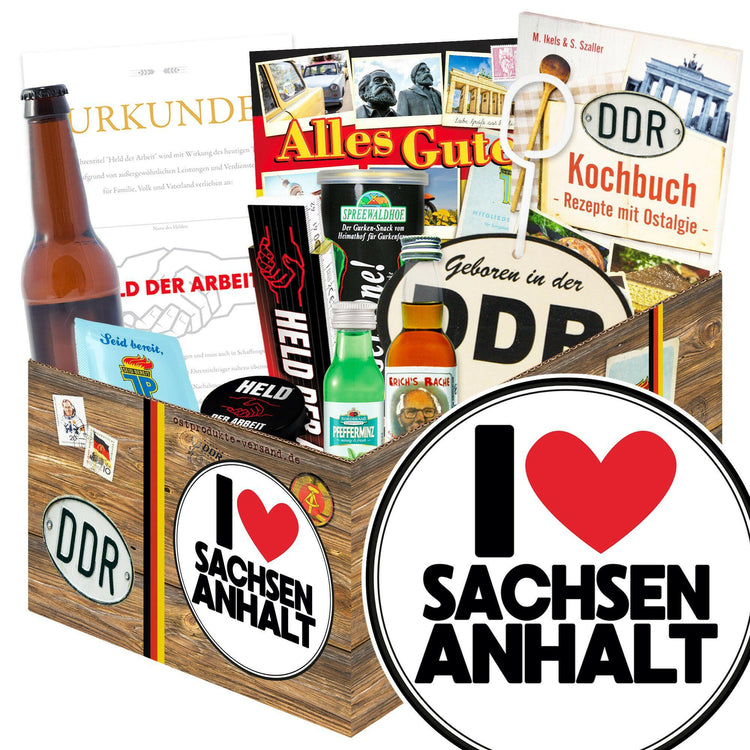 I Love Sachsen - Anhalt + Geschenkset Ostpaket "Männer Box"
