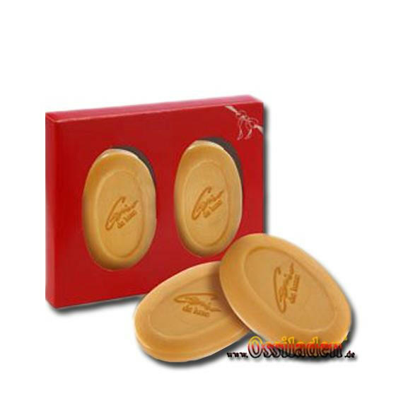 2 Seifen in edlem roten Geschenkkarton.