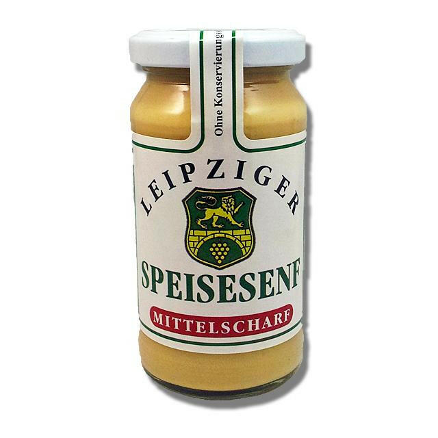 Erleben Sie den köstlichen Geschmack von Leipziger Speisesenf! Dieser mittelscharfe Senf wird traditionell aus hochwertigen Zutaten hergestellt und verleiht Ihren Speisen eine würzige Note. Egal ob zu Fleisch, Wurst oder Käse - mit Leipziger Speisesenf wird Ihr Essen zu einem wahren Genuss!