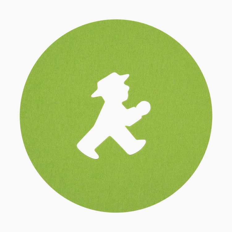 Hochwertiger grüner Filz-Untersetzer - Ø20cm - mit weißen Ampelmann