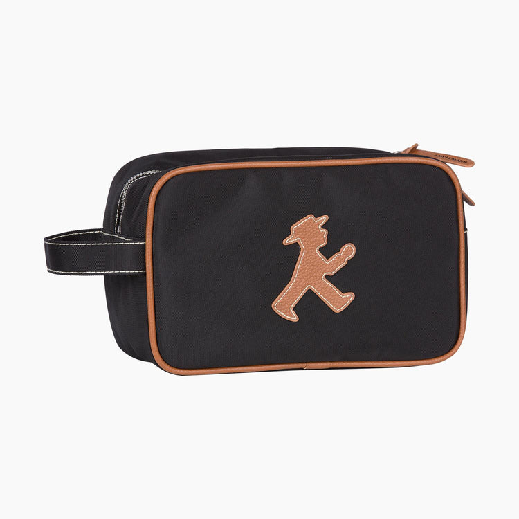 Kulturbeutel mit Henkel zum Aufhängen - schwarz - mit Ampelmännchen Applikation in braun 15x24 cm