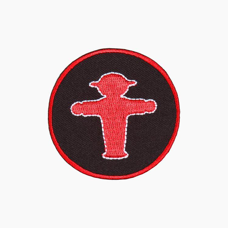Schwarz-roter Ampelmann-Aufnäher mit Kleberückseite rund zum Aufkleben und Aufbügeln, 6 cm