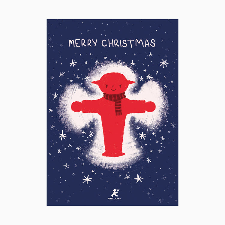 Weihnachtswünsche als Postkarte mit MERRY CHRISTMAS lila Weihnachtsengel als Ampelmann Steher - 12x17 cm