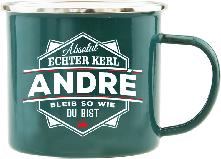 Emaille Becher (Tasse). André - Absolut echter Kerl - Bleib so wie du bist