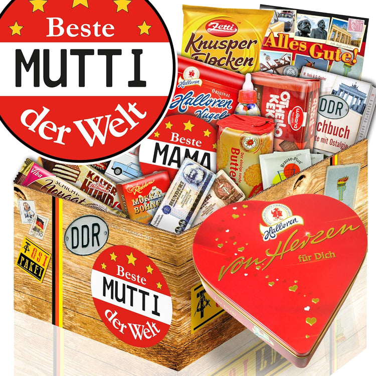 Geschenkbox "DDR SÜSSIGKEITEN BOX L - Beste Mutti" mit Herzpralinen