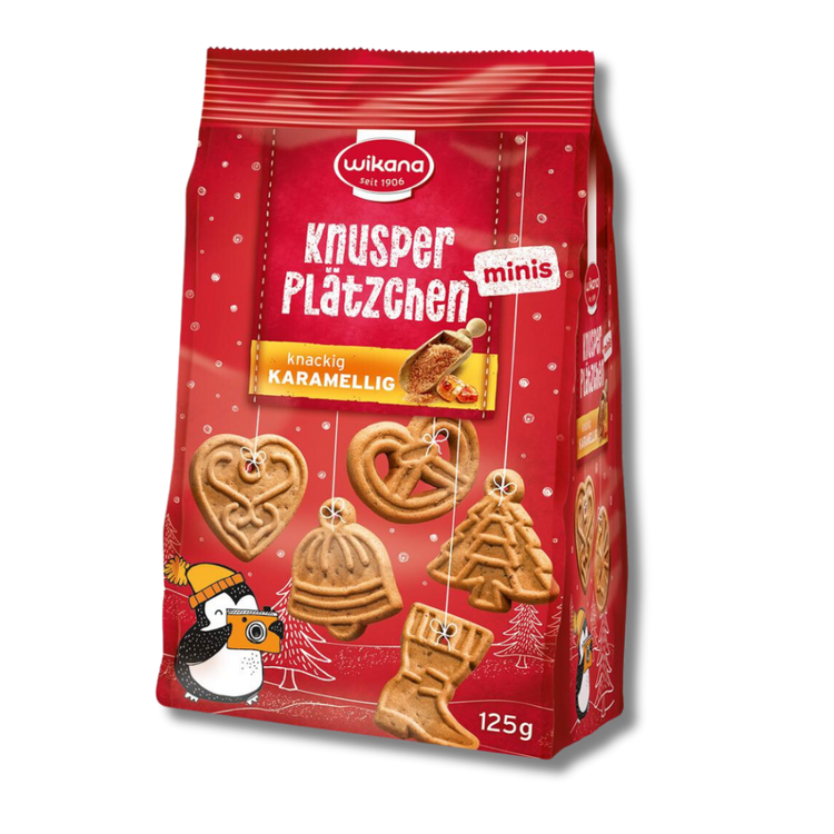 Wikana Knusper Plätzchen Karamell Weihnacht Minis – festliches Knuspergebäck, 125 g