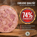 Feine Bierschinkenmasse mit Schinkenstückschen sowie feinen Gewürzen, schnittfest mit etwas Fett- und Jusabsatz am Rand.
