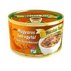 Magyaros bab egytál csipös házikolbásszal Zutaten: Trinkwasser, Sauerkraut 31%, gepökeltes Schweinefleisch 11% (Schweinefleisch 73%, Trinkwasser, Speisesalz, Stabilisatoren: Triphosphate, E 407a, Diphosphate, Geliermittel: Kaliumchlorid), Weizenmehl, Naturletscho (Tomaten, Speisepaprika, Zucker, Speisesalz),Sauerrahm, Sonnenblumenöl, Perlgraupen, Gewürze, Speisesalz, Speisewürze (E 621, E 631, E 627). 400g Dose