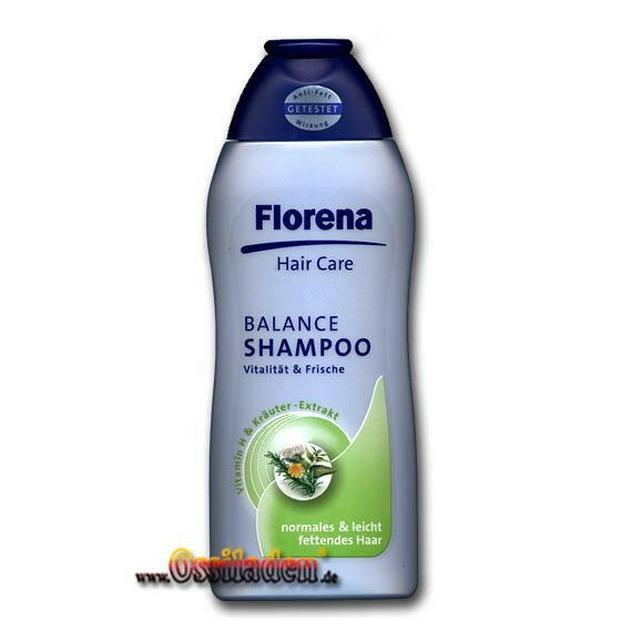 250ml Flasche Florena Shampoo Balance verleiht Vitalität und Frische, mit Vitamin H & Kräuter-Extrakt, für normales und leicht fettendes Haar.