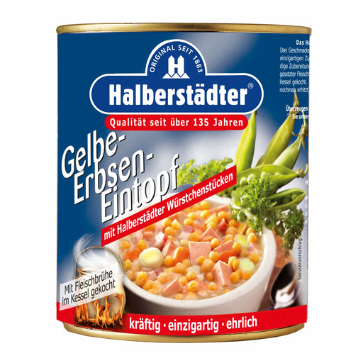 Gelbe Erbsen-Eintopf mit Halberstädter Wurststückchen, 800g - Kräftig & Einzigartig Gelbe Erbsen-Eintopf mit Halberstädter Wurststückchen Kräf...