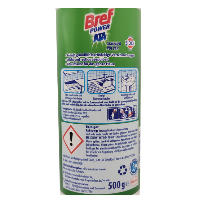 Dank seiner Körnchen-Verstärkung bietet es eine starke Reinigungswirkung, während es gleichzeitig das Material dank feinem Marmormehl schont. Verabschieden Sie sich von hartnäckigen Verschmutzungen und Kalkablagerungen und erleben Sie strahlend saubere Oberflächen mit dem Bref Power ATA Scheuerpulver!