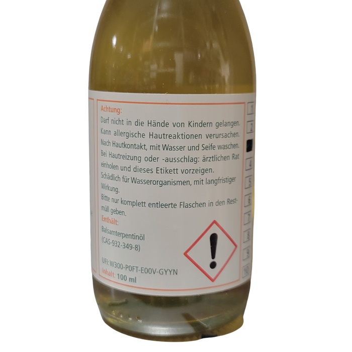 Inhaltsstoffe: Balsamterpentinöl (CAS-932-349-8)