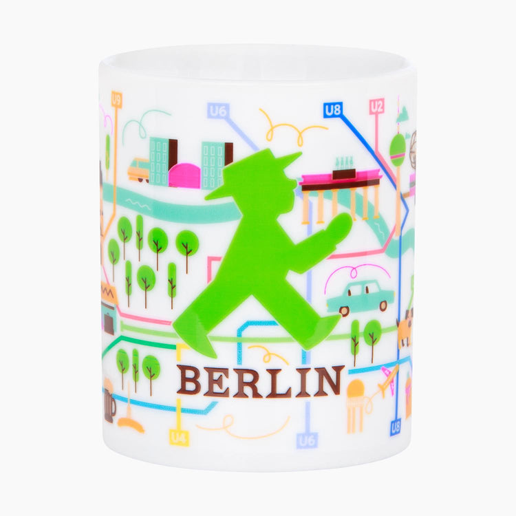 Ganz Berlin auf deinen Händen! Unsere Tasse ist mit dem Berliner U-Bahnplan-Druck & verspielten Elementen. Starte schwungvoll mit einem frisch gebrühten Kaffee in den Tag oder schlürfe an einem gemütlichen Abend Tee/Schokolade mit Freunden.