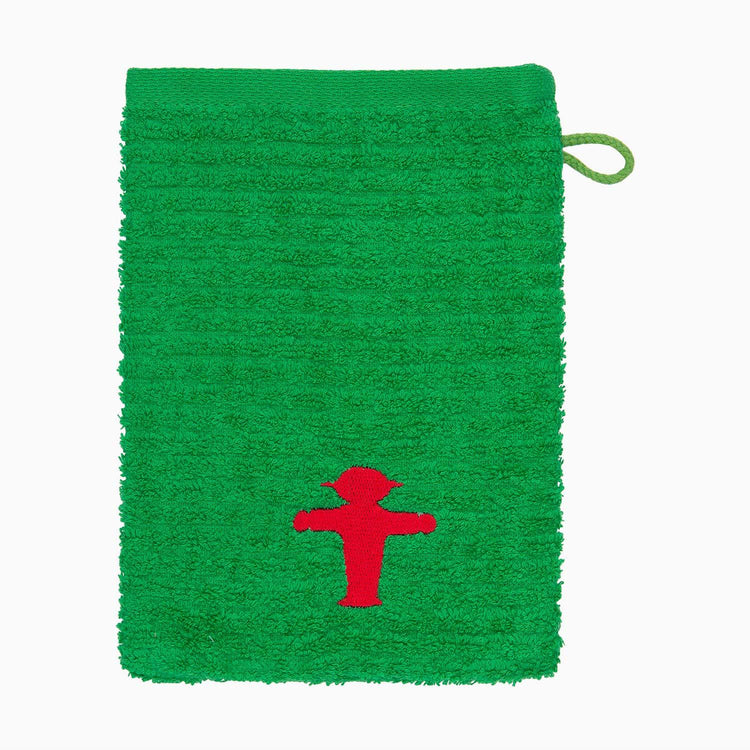 Waschhandschuh grün mit gestickten Ampelmann rot - 100% Baumwollfrottee von Möve