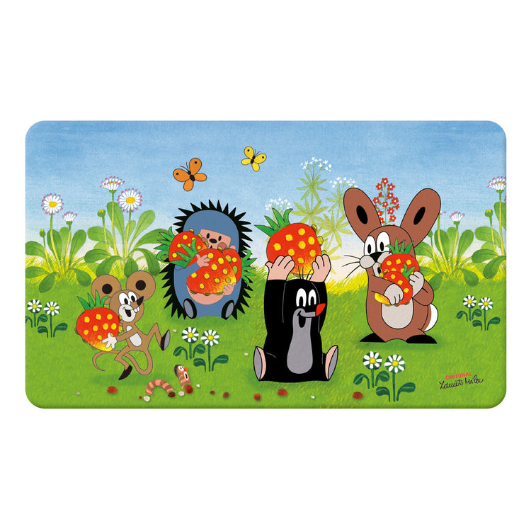 Das Frühstücksbrettchen Der kleine Maulwurf aus Melanim mit der Lokomotive für kleine und große Fans ist spülmaschinengeeignet.