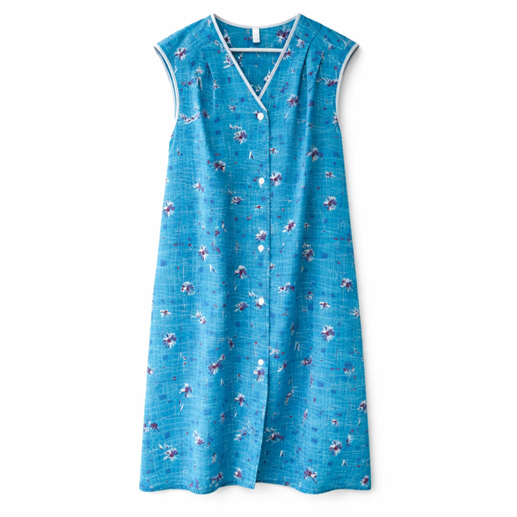 Dederon Kittel-Schürze in hellem Blau im locker-leichter Schnitt - tolles Muster und leuchtende Farben