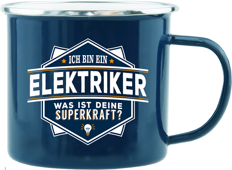 Emaille Becher / Tasse Ich bin ein Elektriker "Was ist deine Superkraft?". Das perfekte Geschenk für den Elektriker zum Vatertag, Weihnachten, Geburtstag, Männertag, Männerabend
