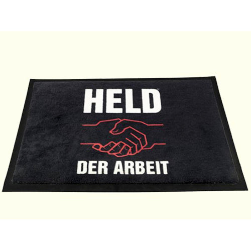 Sie erhalten eine hochwertig bedruckte Schmutzfangmatte mit dem Schriftzug „Held der Arbeit“. Die Fußmatte hat die Maße (40 x 60) und bietet genug Platz für Ihre Treter.